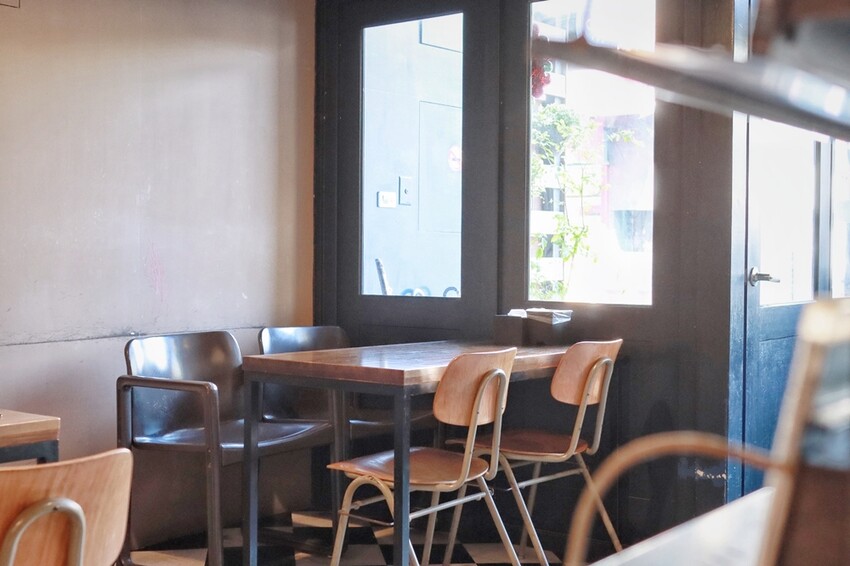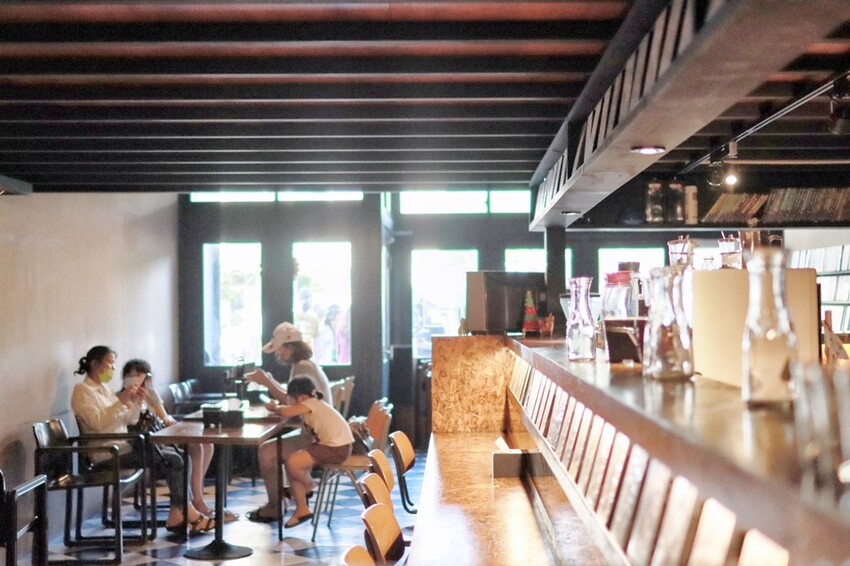 金像咖啡主要的用餐位置都在一樓,有兩人座、四人座以及吧檯的座位區,而二樓也有用餐位置,但前往二樓是需要脫鞋,且因為它算是樓中樓的閣樓設計,用餐起來會比較有壓迫感,但拍照打卡真的很適合,完全被DVD給包圍住。