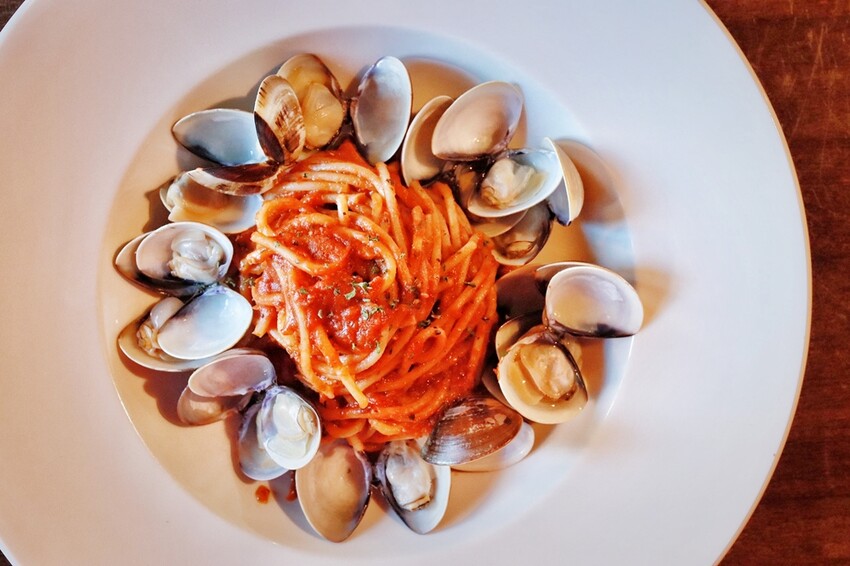 蛤蜊真的給超多,茄汁味道也很夠,這義大利麵深得玉米姊姊的心,她超喜歡!
