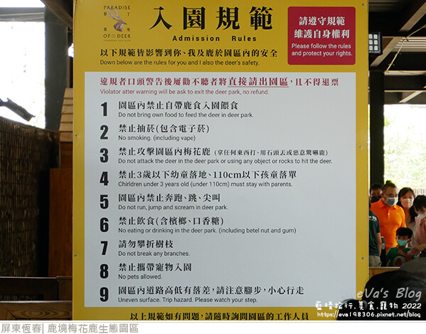 入園有幾項規範需要特別注意一下,包括你餵的太慢的時候,梅花鹿會用鹿角一直頂你...