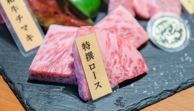 焼肉まさしげ主打的自然是鳥取和牛,而且是一頭買(整隻牛買,會有不同稀有的部位),另外就是這幾年鳥取和牛在推廣上強調的「牛油酸55%」,所謂牛油酸55%簡單說就是牛油酸達到55%,加熱到40度就會溶化,和橄欖油的成分一樣,是比較容易被人體吸收跟代謝,再簡單說就是油質對人體比較不會造成負擔,也就是說這油吃多了也不會變「胖」、「胖」、「胖」,很重要所以要說三次...。