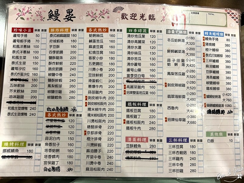 菜色真的就是一般熱炒選項,炸的、炒的、鐵板的、最有特色是右邊的選項!是主打的鰻類料理!而且竟然有鱸鰻!!