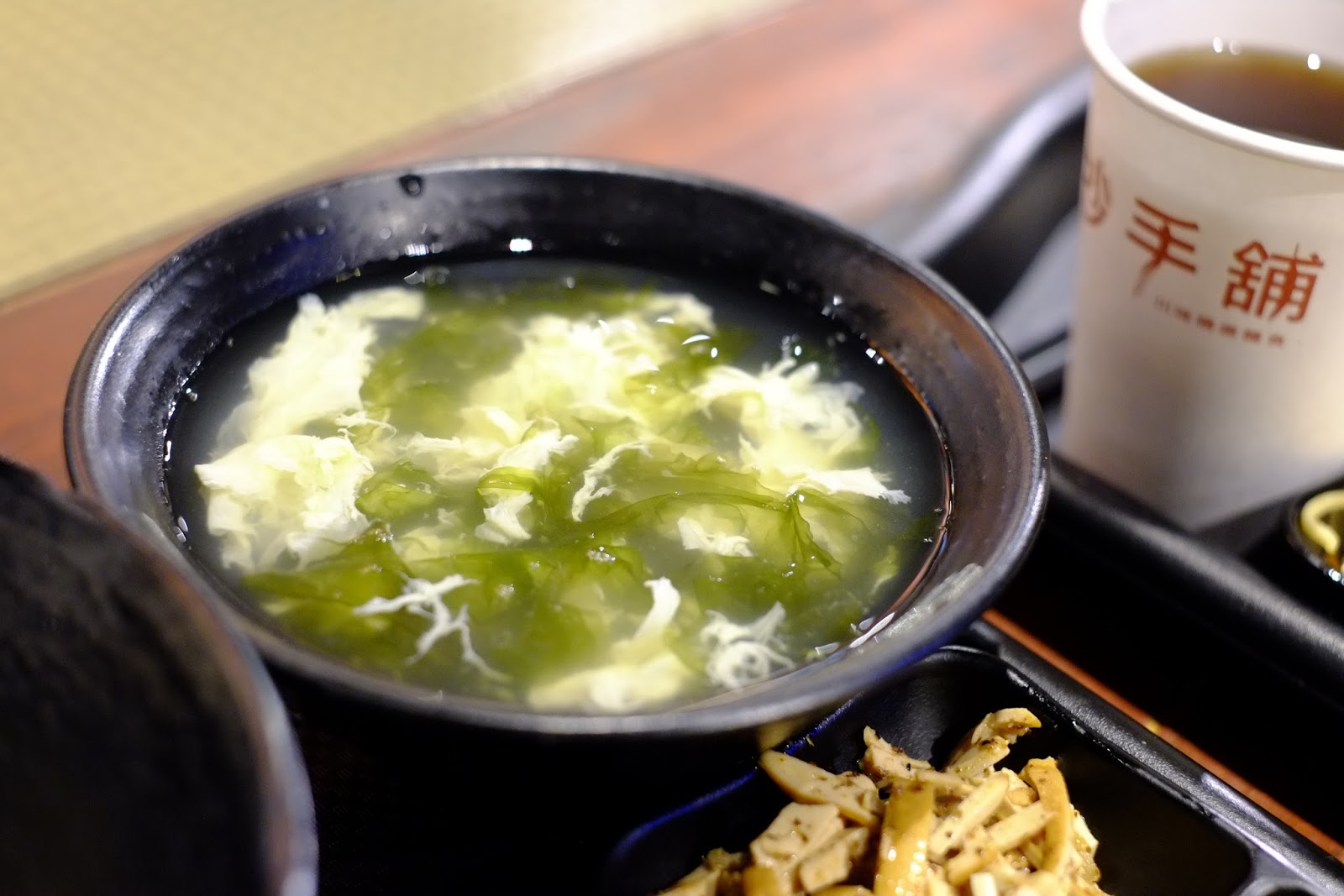 紫菜蛋花湯,料很多,介於羹跟清湯中間,還不錯喝,味道大概是整套餐最清淡的!
