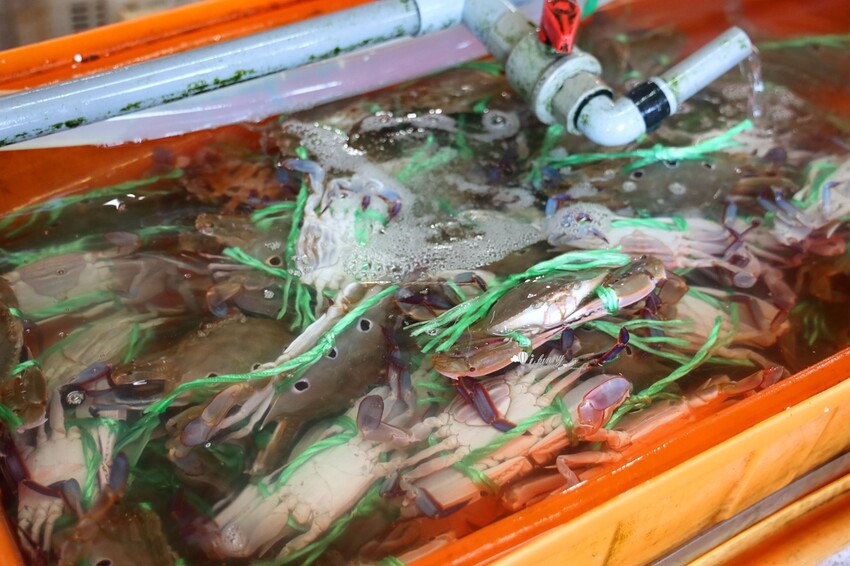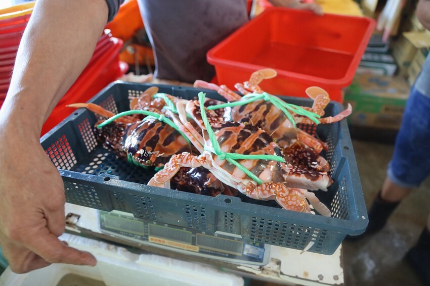 這天姐妹團是為了吃螃蟹來的,所以挑選時特地讓老闆挑越大隻的越好,然後選好後再秤重計價。