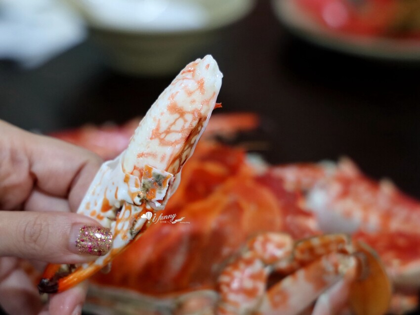 接著就是最期待的萬里蟹上桌了!清蒸後的萬里蟹呈現的紅橘色實在太誘人了!