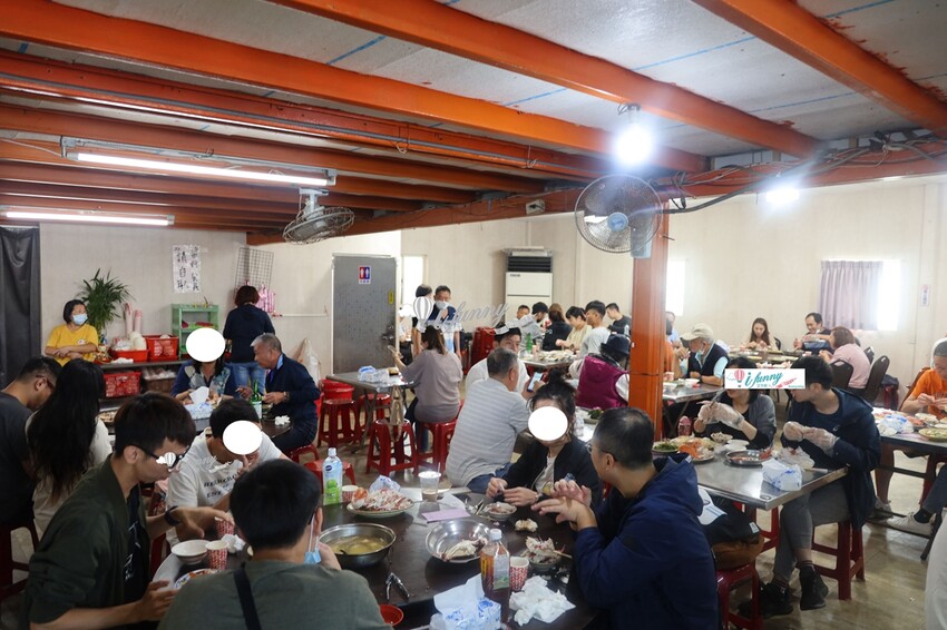 阿嬌萬里蟹的座位不少,有大小桌的配置,用餐時間人聲鼎沸,大家都很認真地在剝蟹吃蟹。