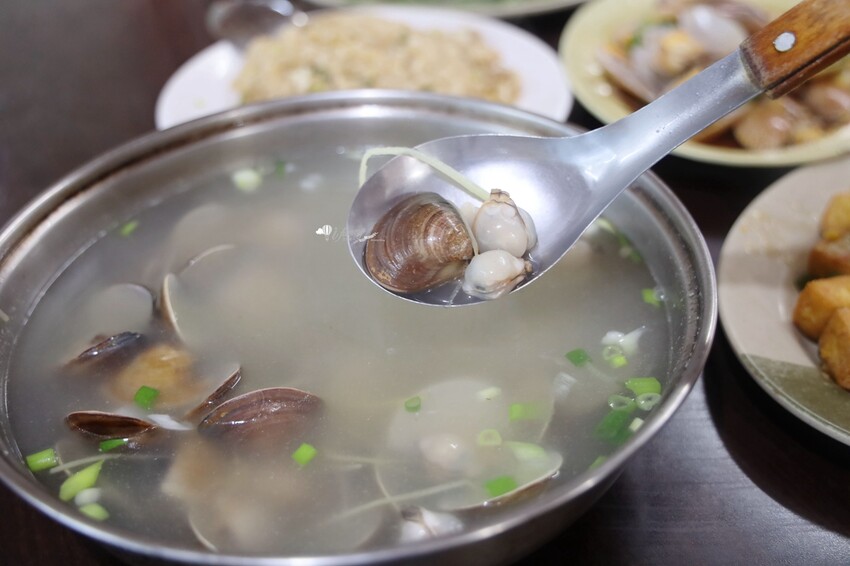 怕吃多了生冷的螃蟹,我們點了熱湯來喝。肥美飽滿的蛤蜊,僅薑絲、蔥花搭配,就能喝到鮮美的湯頭。
