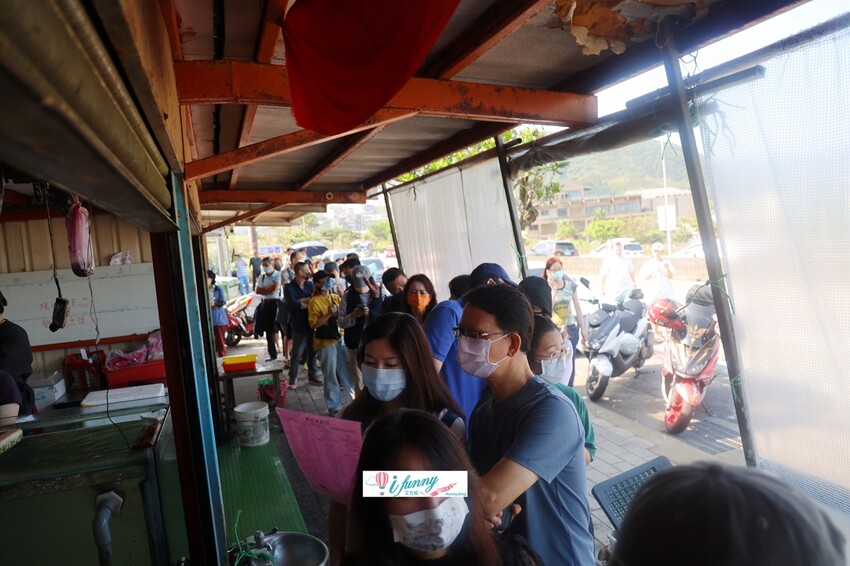 姐妹團為了吃蟹,就想到萬里蟹,大家都忙好不容易喬了一個平日,集合後趨車前往阿嬌萬里蟹。我們早在網路上就得知要有排隊的心理準備。下車時見到人潮不是太多,所以連備案都沒想就下車開始排隊。