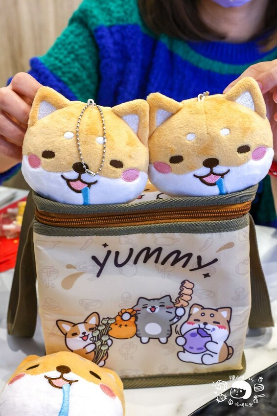 這是我看過最可愛的杯套,外面是可愛柴犬流口水的娃娃,打開背後的拉鍊拉出來就是杯套,不用的時候還可以掛在包包當吊飾。