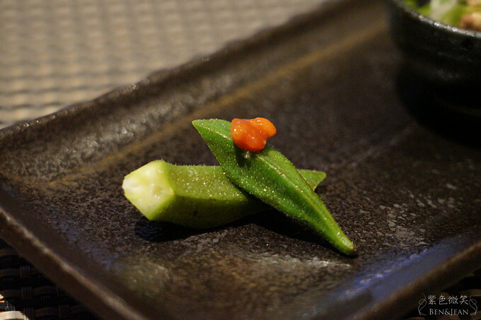 將秋葵清燙後佐以手作豆味噌,鹹味中帶出秋葵之清爽不膩,沒想到加點味噌,不但好看,而且一同入口味道好極了!!清爽但滿有味的哦