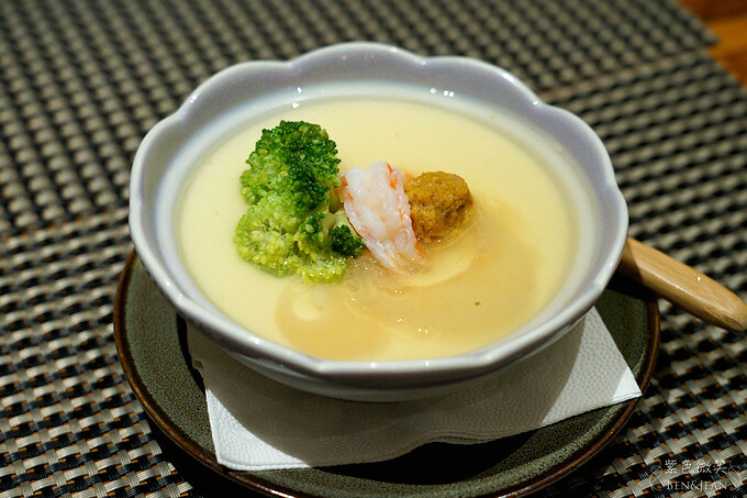 以柴魚湯底燉煮特產羽毛翅,再融合費時熬煮之高湯製成日式茶碗蒸,最後放上新鮮雲丹(海膽)一起悶煮,使整道菜更經典迷人,我們家小孩超愛!!!