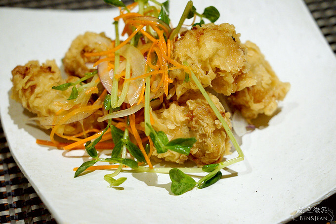 台灣特產桂丁雞腿肉精心醃漬,搭配南蠻醬汁( 南蠻醬汁也是日料的經典調味醬之一哦),酸酸甜甜的,展現出文化融合的新風味
