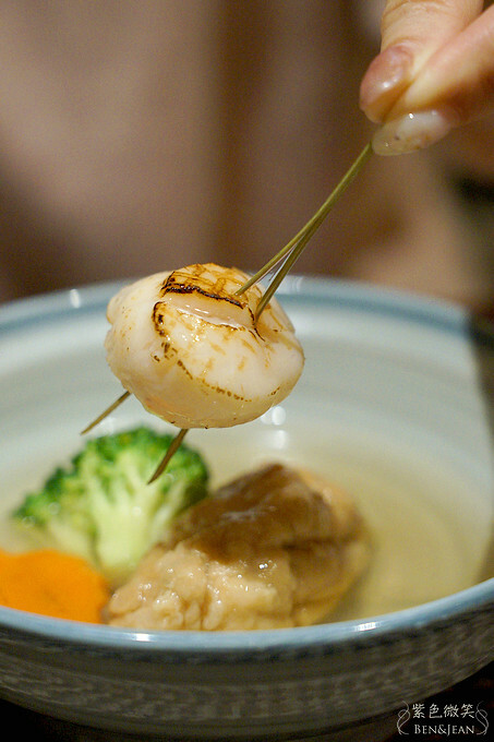 上頭再以新鮮干貝做搭配,完整呈現最原始的日本風味