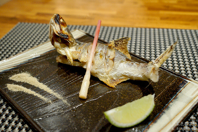 以台灣自產新鮮午仔魚,日文名燕鰶,撒上適當薄鹽後加以燒烤,帶出魚肉原本的鮮甜,搭配醃製過的筆薑、胡椒鹽、檸檬,更添獨特鮮味