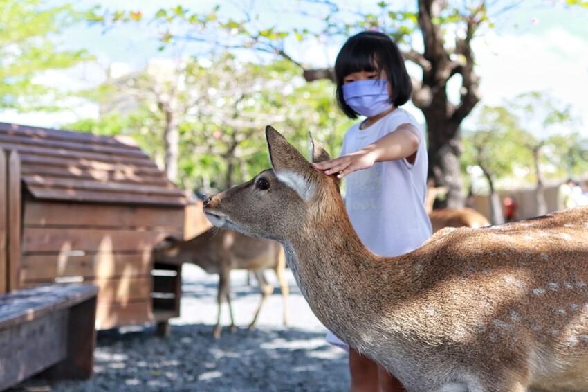 但切記,梅花鹿們不同於野生梅花鹿,牠們十分親近人但也很膽小,容易受到驚嚇,所以在園區內切勿奔跑,以免驚嚇到這些梅花鹿!有帶小朋友入園體驗的家長們,也一定要顧好小朋友,千萬不要讓他們落單,深怕梅花鹿們會有以大欺小的狀況發生!