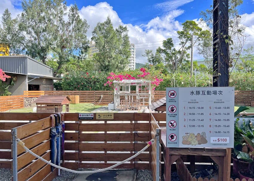 前陣子就從網路上得知鹿境多了可愛水豚君,這次來當然也要來瞧瞧囉!而想要近距離靠近(餵食)水豚君,則是需要另外付費且有場次限制,每次15分鐘,價格為每人100元,在這15分鐘內可近距離靠近水豚君,導覽人員也會提供一把牧草讓你餵食。