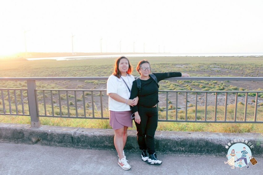 我們走在河堤看向風車,夕陽美景盡收眼底!尤其是跟家人出遊,幸福感滿滿呢~建議大家放好行李後就可以漫步走到高美濕地囉~