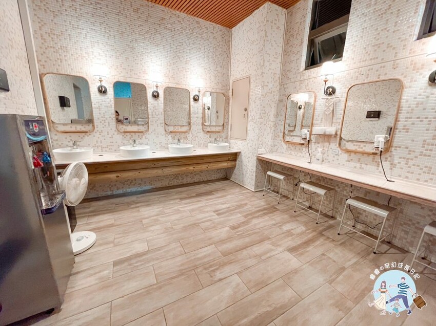 洗完澡出來也有一排吹風機及梳化區,對女生來說非常友善,而且吹風機的風量很大,對長髮女孩非常友善!