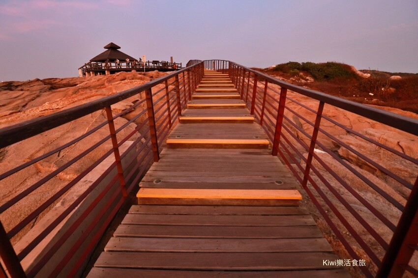 到金門旅遊就會想要走不同的戰地風情,以往的坑道這次就沒有走了,復國墩景觀平台賞日出我想應該是來金門必訪景點之一,這無限延伸的階梯,無止盡的讓你拍照起來無敵水,就是要這般的美景才能喊我們這群人早起到金門金城鎮景點復國墩景觀平台賞日出看日出啊!復國墩景觀平台位在金們最東邊的小漁港,復國墩小漁港,因為沿海為岩岸地形,花崗岩的形狀讓這裡變成特殊的地形,加上這裡是紅土層地質,自然的環境加上神工鬼斧的地形,讓你想好好欣賞沿岸風景啊!我們從金門民宿金門住宿推薦鎮西客棧民宿大概路程約50分鐘,直接金門租車推薦金豐租車超便利,想去哪就去哪啊!