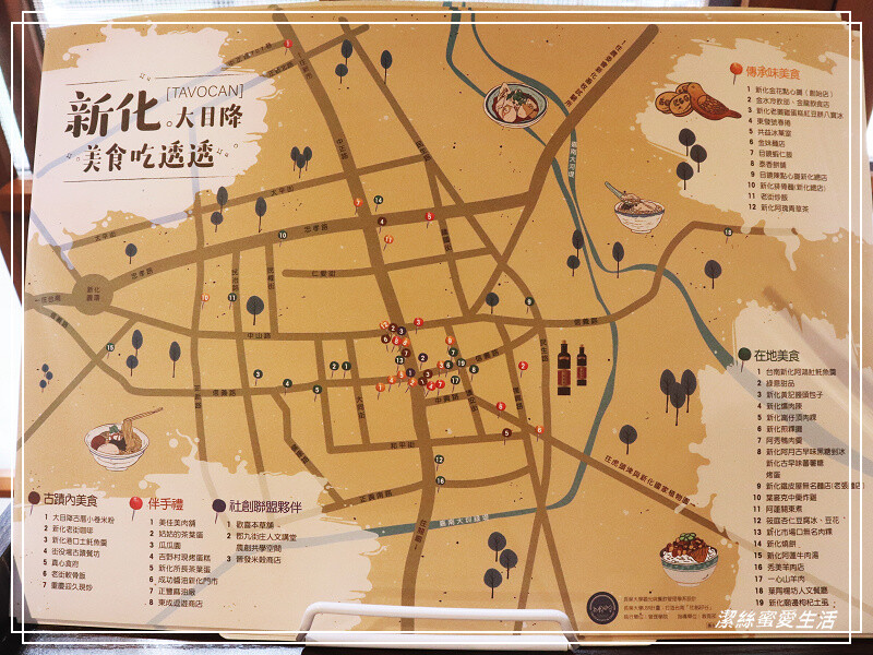 裡頭主要介紹新化的大事紀,以及大目降的故事歷程,還有很實用的美食吃透透地圖。