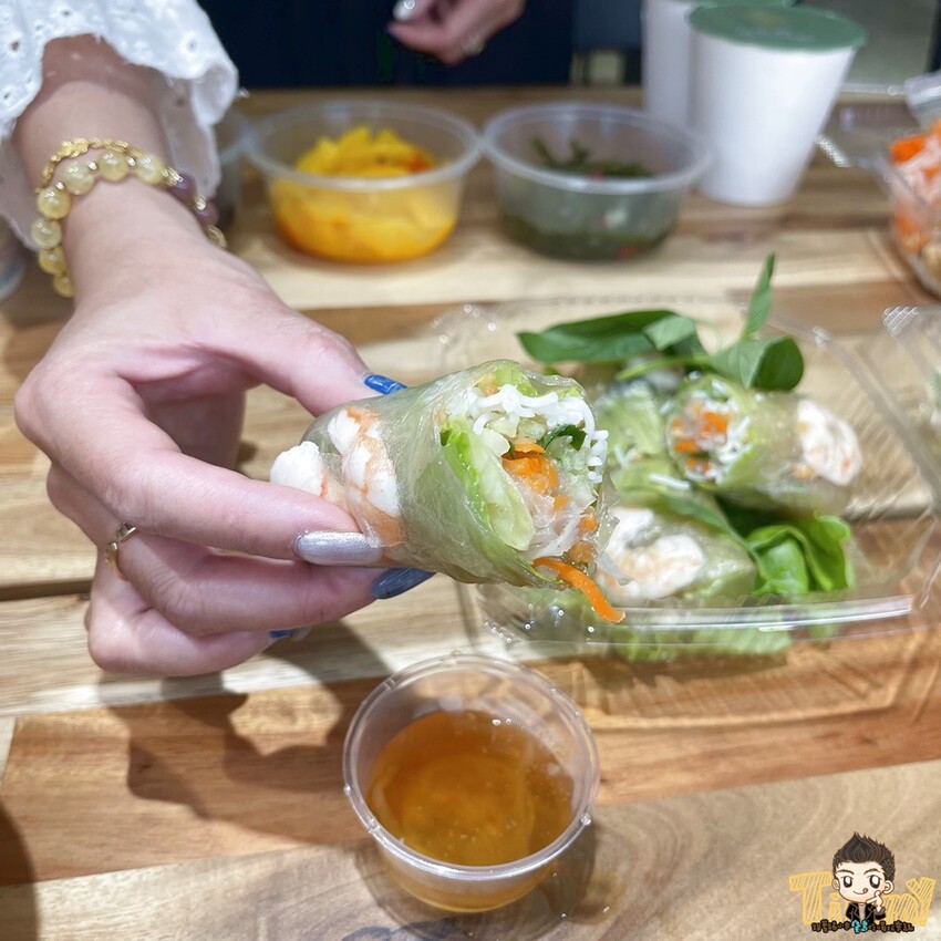 外皮很Q帶有嚼勁,包裹一整支鮮蝦、生菜、米線,搭配酸V的醬汁,口感清爽又有飽足感,是輕食的好選擇