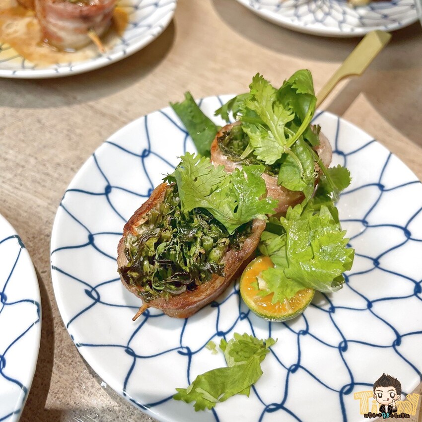 特別的是蔬菜串卷有多種搭配,像是秋葵、蘆筍、豆苗等,還有讓人又愛又恨的香菜