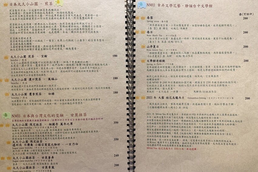 菜單上的品項眾多,想吃手作甜食、手作鹹食、喝茶品或喝杯手沖咖啡都可以做選擇,菜單上寫的十分清楚,也不用擔心客人有疑慮,我們挑選了幾樣店家推薦的手作下午茶甜點跟咖啡、茶品,在幸卉裡,每人最低消費一杯飲料。