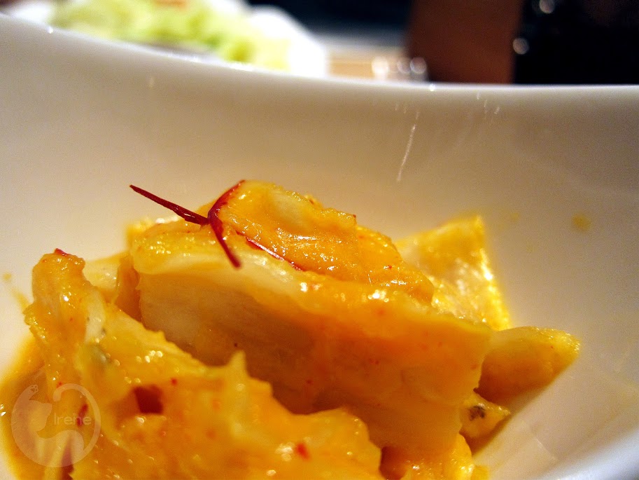 這個是和魚香炊飯一起送來的,和一般的酸辣的泡菜不一樣,黃金泡菜比較回甘,比較適合大眾口味!