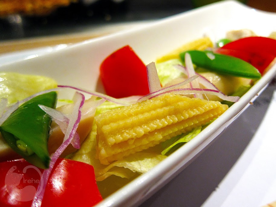 點好餐不久,就送來這個很漂亮的沙拉盤!每次吃沙拉最怕吃到那種好像冰很久的蔬菜,一點也不脆,水份也很少,