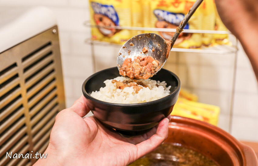 依造慣例一碗白飯、一碗王子麵才會滿足口腹之慾,盛一碗白飯再淋上肥瘦相間滷肉汁,口味鹹香比例恰恰好,讓人忍不住想再來一碗~