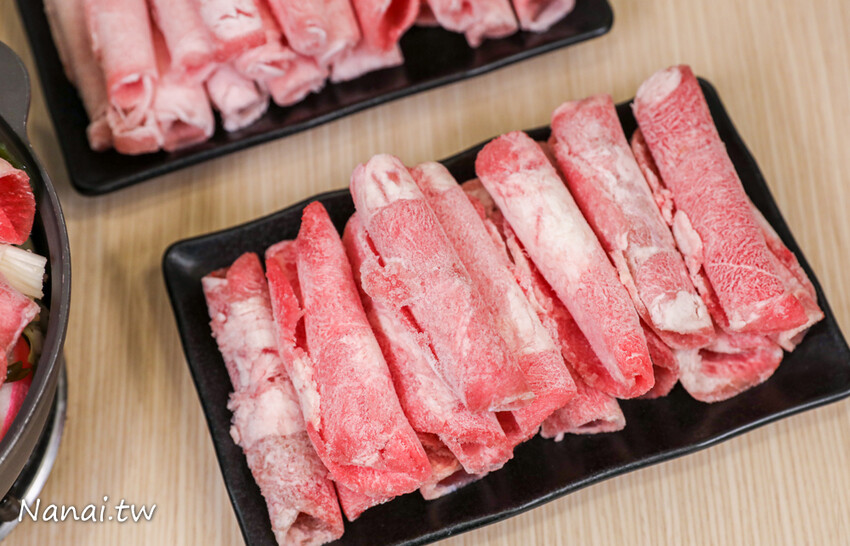 無肉不歡的我,走到哪總是不會放過肉量升等的機會,到底多愛吃肉拉(笑)~ 除了鍋物本身有附肉片外,NANA加點2.5倍牛肉大份量,肉品一上桌份量多又霸氣,從側面看最少十幾片,每片保有一點點的厚度,再將牛肉放進鍋物熬煮,肉質表現嫩口不柴,大口嗑肉超過癮。