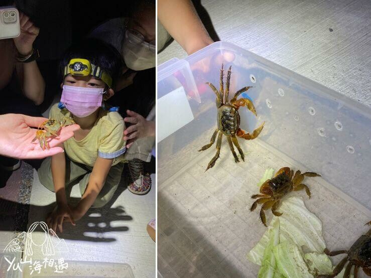 可以近距離與招潮蟹互動,經過室內課程後大家都變成螃蟹知識王,一眼就看出是公是母。有勇氣的話也能讓牠爬到手上哦!
