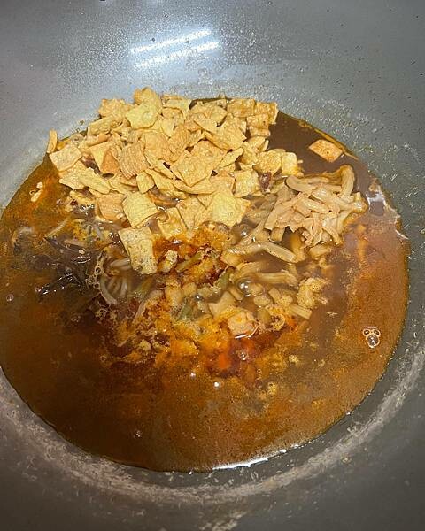 (不知道要不要轉小火的我,煮到水乾了好險及時發現差點麵就沒了。。。)