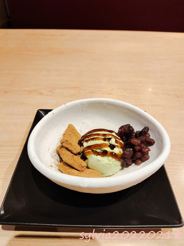 飲料的冰紅茶我喝了三口,不是很喜歡就撤掉了(裡面有檸檬片)。日式蕨餅冰淇淋,我第一次來吃就被迷住了,甜甜的+抹茶去中和,非常的喜歡。