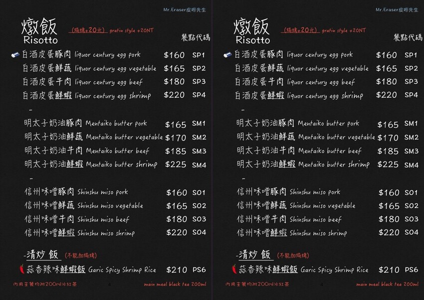 Mr.eraser 皮嚓先生|內用菜單(摘自官網)