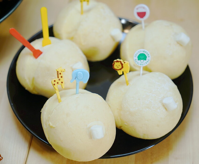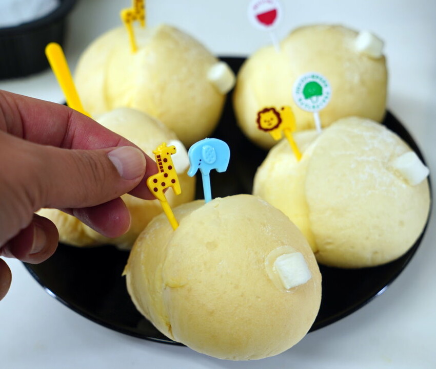 ▼福兔臨門生乳包,擅長西式甜點的復興空廚,因應年節特別融入中式的餡料,打造富有童趣又玲瓏可愛的生乳包,讓人眼睛為之一亮;生乳包以棉花糖點綴,我們自行加上兩根造型叉子,就好像兔子的耳朵一樣,看起來更討喜了!