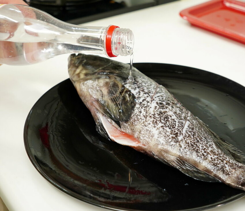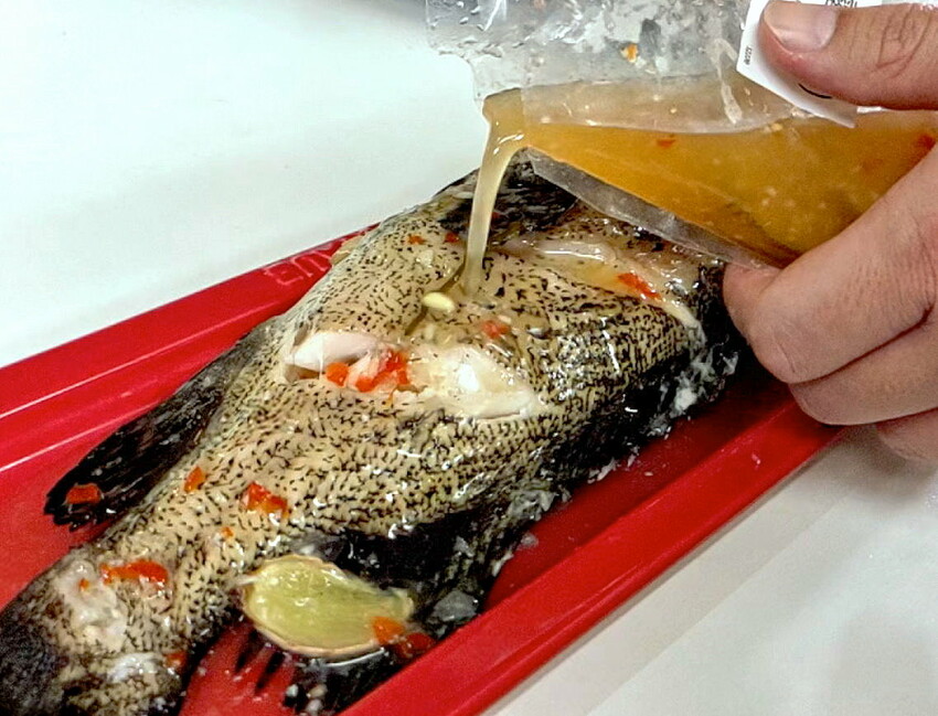 ▼接下來要來處理石斑魚啦~基本上石斑魚內臟都已經去除乾淨,我們只需要解凍後將石斑魚的血水沖洗乾淨即可!