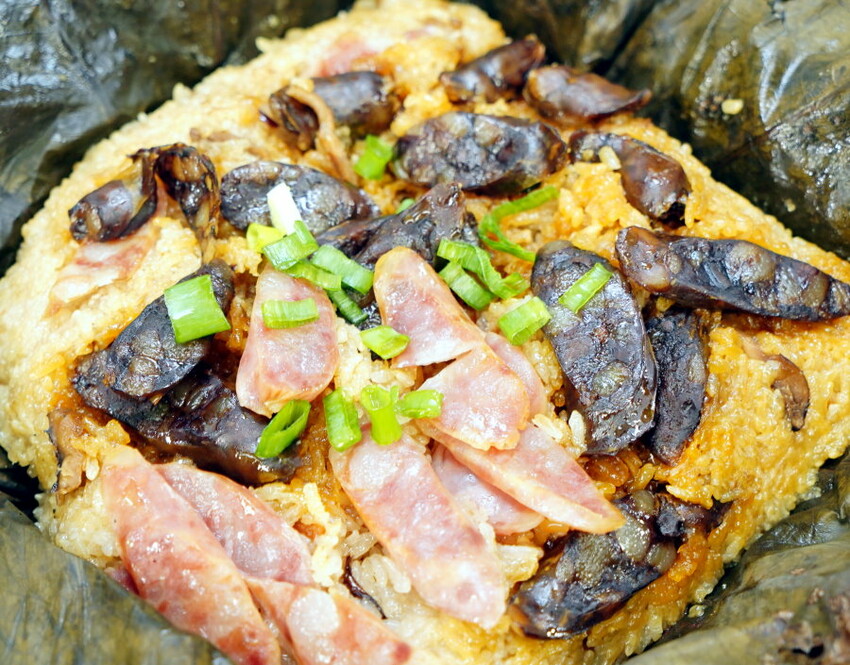 ▼糯米飯帶點香Q的嚼感,每一口都帶有荷葉的淡雅清香與肝腸、臘腸的獨特油香,有點在吃臘味煲仔飯+油飯的錯覺,也是他們家的必吃招牌之一!