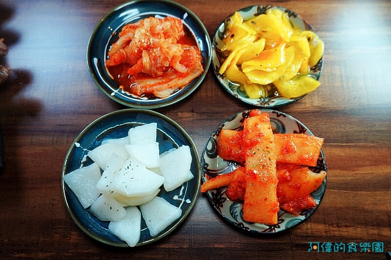 左上「韓式泡菜」,泡菜多汁不太辣,就連怕辣的我都吃得津津有味。