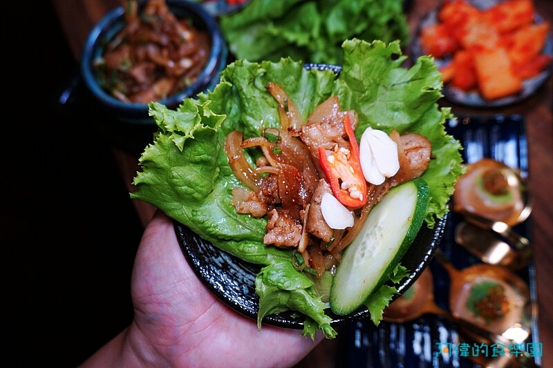 將軟嫩的燒肉、洋蔥、小黃瓜片、蒜片、一點紅辣椒(怕辣的可不加)都包進來,口感豐富卻清爽,吃完很滿足!