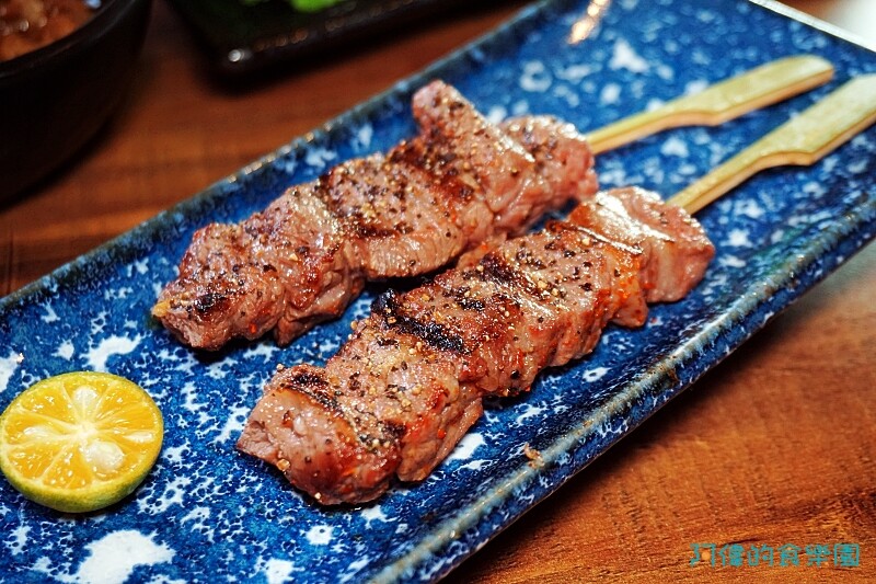 第一道就是我愛吃的牛肋,從顏色就看得出它入味程度,雖然有七味粉的調味,帶一點辣度,卻也吃得到牛肋條香甜的油脂,嚼到後面有奶香味,而且肉質好軟嫩啊!