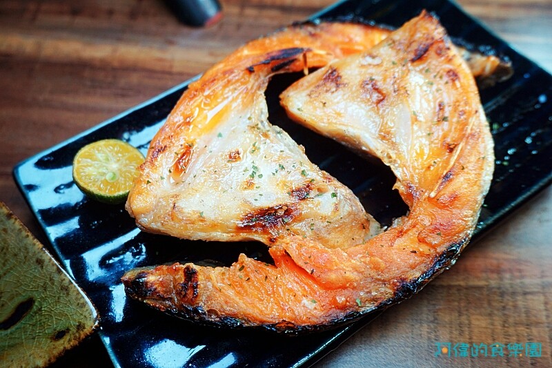 這份量蠻大的鮭魚下巴僅以鹽巴調味,前半段寬的部份油脂超多,吃來真的超香!後半段則油脂少,純吃魚肉,等於有兩種口感。