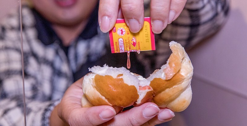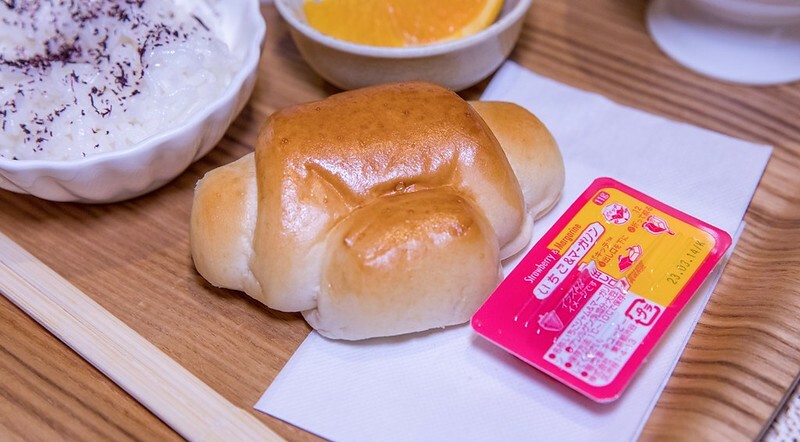 這個麵包很鬆軟,其實還不錯吃,這種果醬盒在日本很常見,記得有一陣子台灣的速食餐廳也有引進,簡單說就是對折擠在麵包上,不用刀子抹簡單又方便 ,不知道有沒有奶油的?