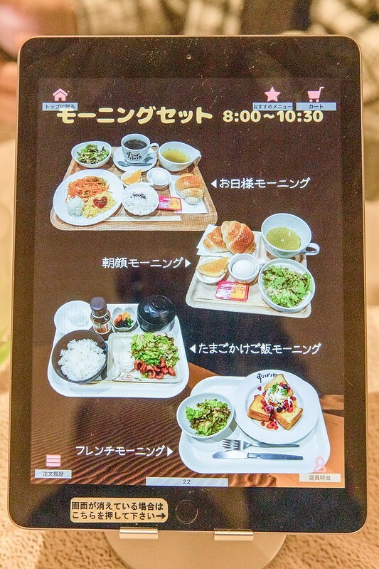 すなば珈琲最受鳥取人歡迎的是cp值很高的特價早餐四選一,桌上都有i pad可以直接點選,早餐供應的時間是08:00-10:30。