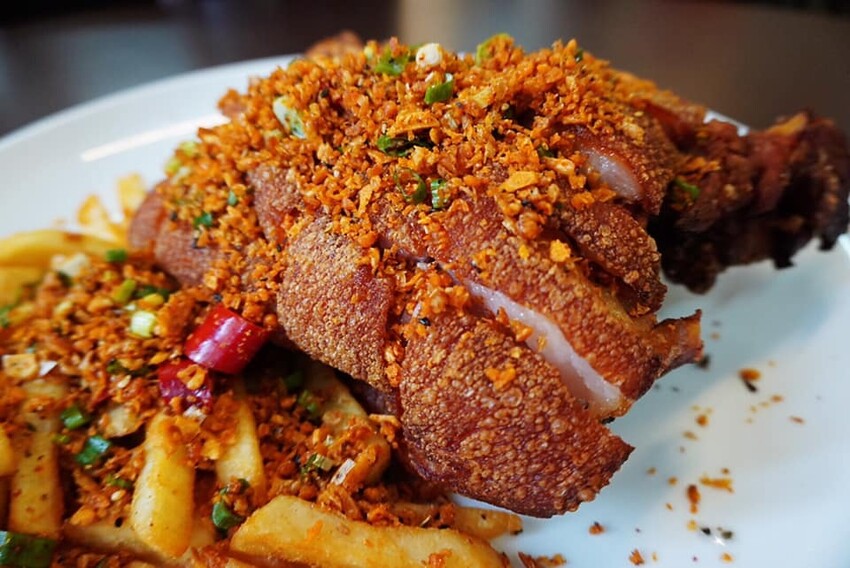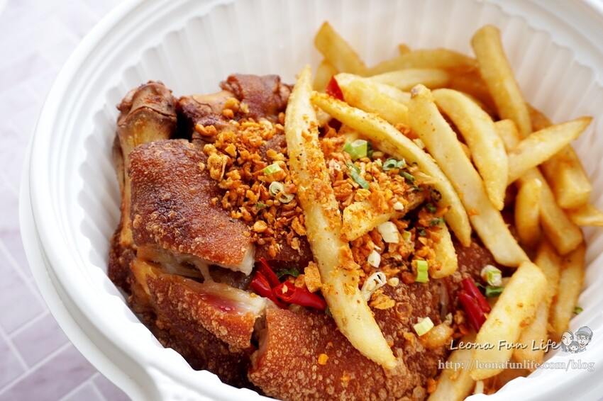 那迷人的蒜酥搭配外酥內嫩的豬腳肉,