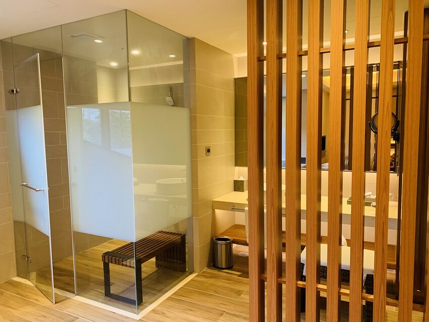 除了淋浴還有蒸氣室可以使用。