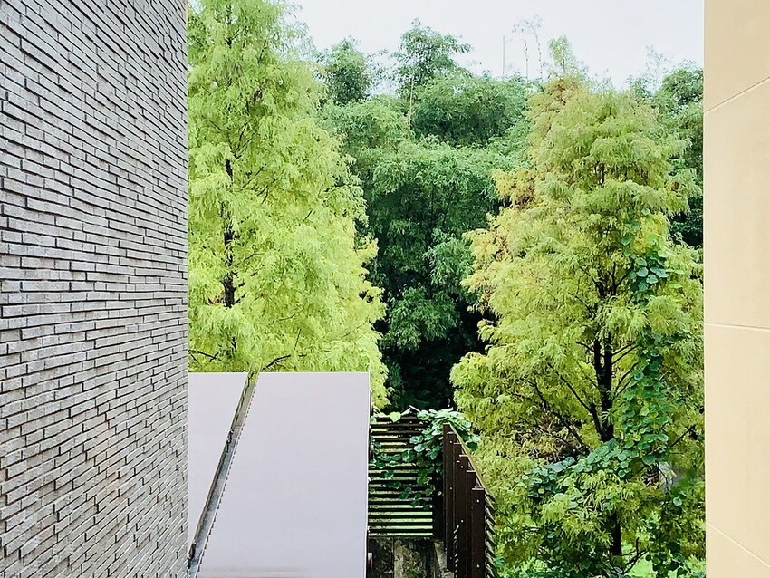 每一間湯屋都有對外窗,泡湯池就在窗邊,窗外就是威斯汀飯店的落羽松,讓客人邊泡湯,邊享受歲月靜好時光!