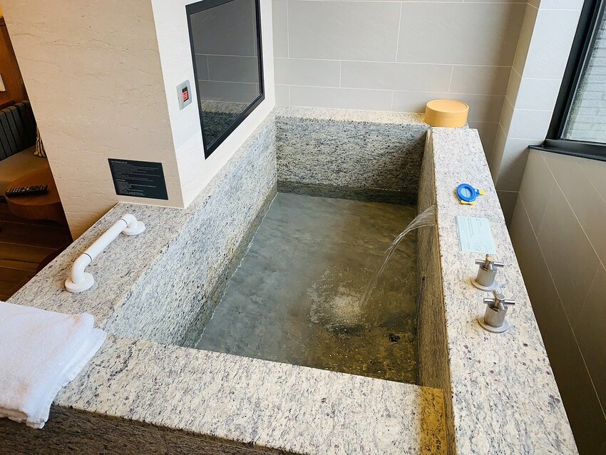 宜蘭力麗威斯汀度假酒店的溫泉泡湯分為露天風呂的大眾池以及室內的溫泉湯屋兩種。
