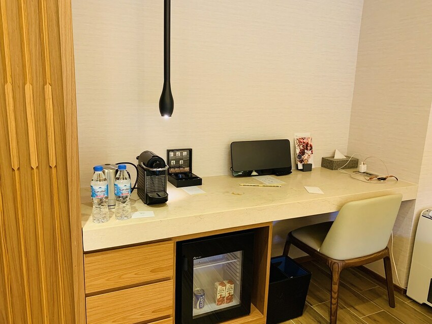 提供的備品,有雀巢的膠囊咖啡、寶礦力運動飲料、果汁、TWG茶包、小點心,東西很豐富。