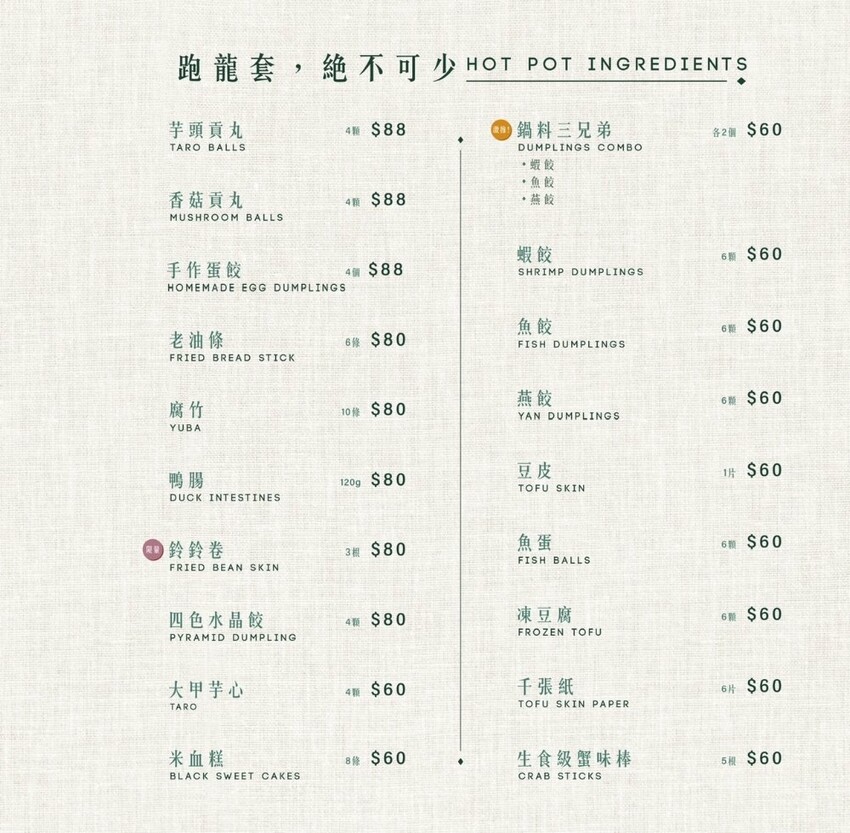 蛤?! Huh Pot菜單