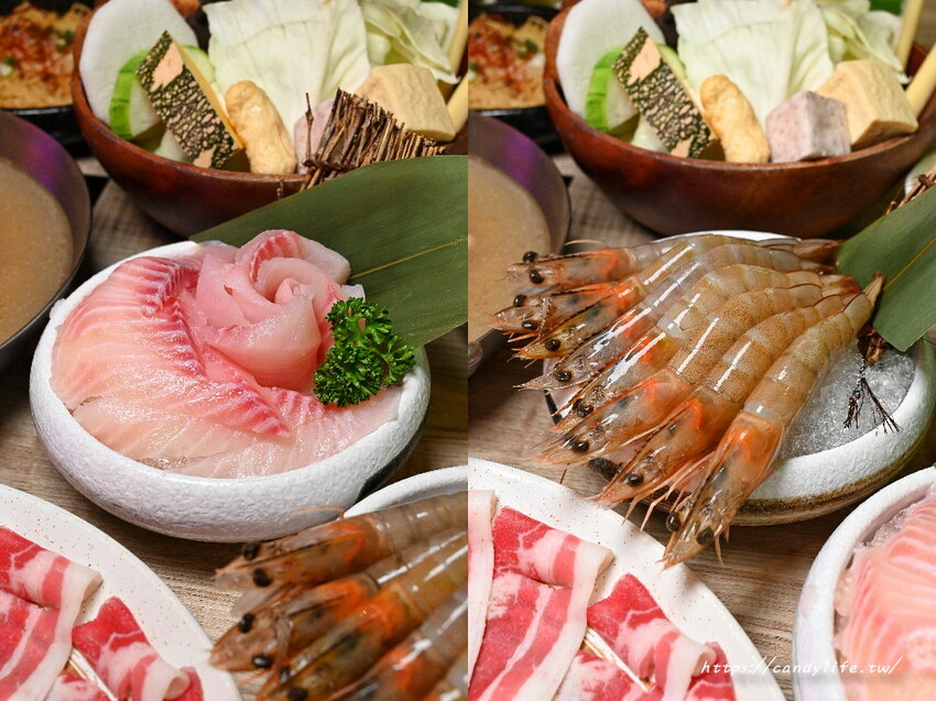 海鮮的部分有三種,分別是台灣現流白蝦、澎湖小卷及鯛魚片可以任選兩種,糖糖選了台灣現流白蝦及鯛魚片,蝦肉肥美彈牙,肉質鮮甜可口,鯛魚片吃起來很紮實,不會散散的也不會有土味